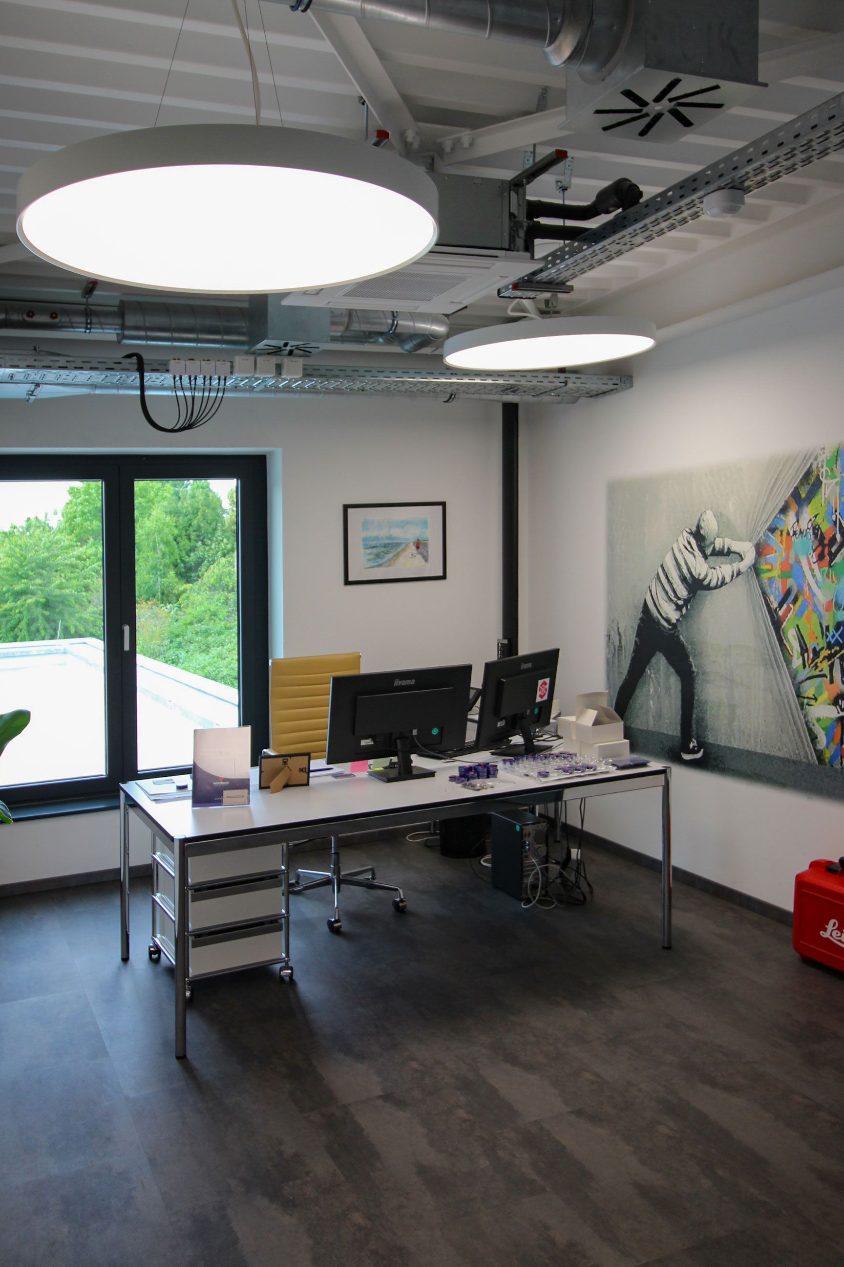 Gerüstbau SamiezButtonDer neue Aufenthaltsort für die Belegschaft soll zum Verweilen einladen. Die Farbe der indirekten Beleuchtung kann hier frei angepasst werden